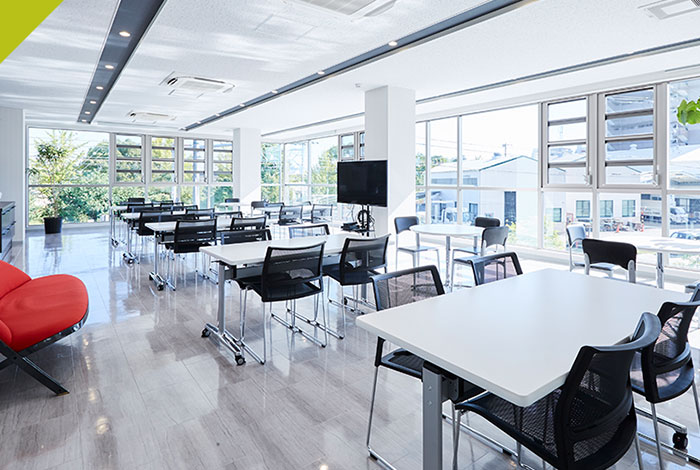 ガラス張りのキレイな休憩・食堂スペースが自慢です。